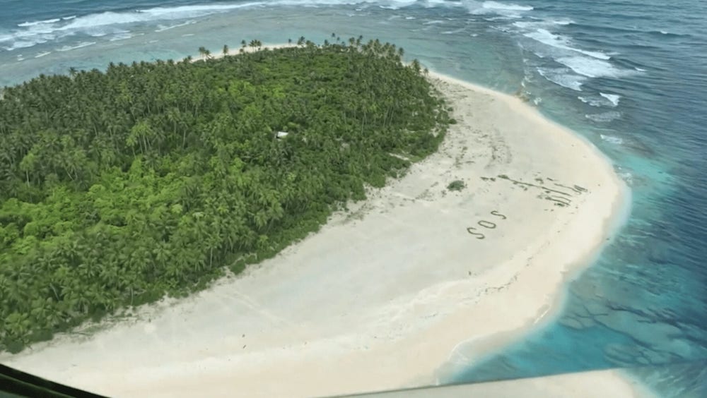 PIKELOT ISLAND – Like out of a movie, three missing mariners were rescued from a deserted island in the Pacific after writing “SOS” in the sand.