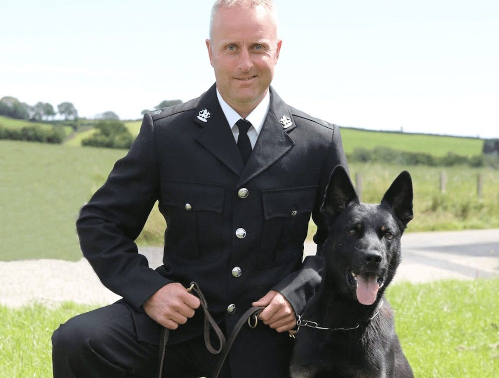 A missing mother and baby who had spent a night outdoors were found on the edge of a ravine by a police dog covering his very first shift.