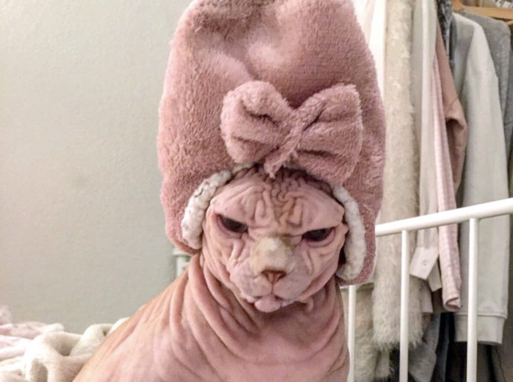 A sphynx cat in Rüti, Switzerland, is becoming an internet sensation thanks to his unusual wrinkles and constantly grumpy expression.